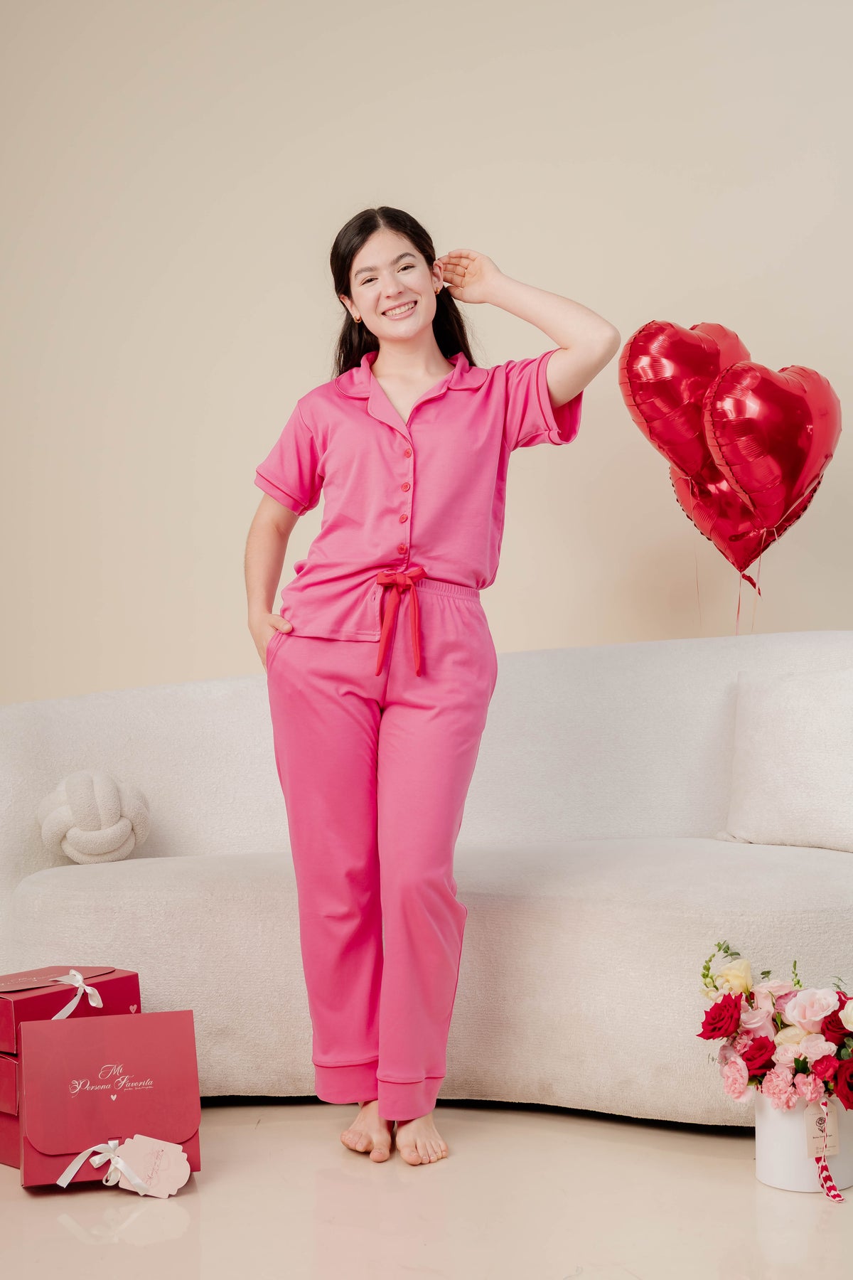 Descubre la suavidad incomparable del 100% algodón pima peruano en una pijama diseñada especialmente para ella.