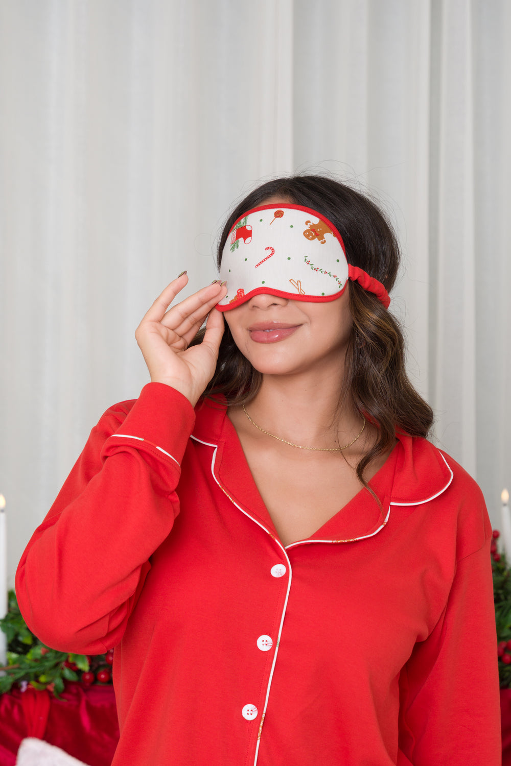 Duerme con estilo y espiritu festivo con este antifaz navideño suave y comodo. Confeccionado en 100% algodòn, suave al tacto. Perfecto para complementar tus pijamas navideñas y soñar bonito esta temporada. 🎄💕🎄💕🧑🎄💕