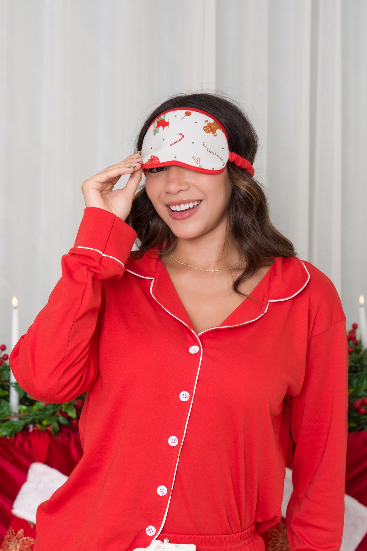Duerme con estilo y espiritu festivo con este antifaz navideño suave y comodo. Confeccionado en 100% algodòn, suave al tacto. Perfecto para complementar tus pijamas navideñas y soñar bonito esta temporada. 🎄💕🎄💕🧑🎄💕