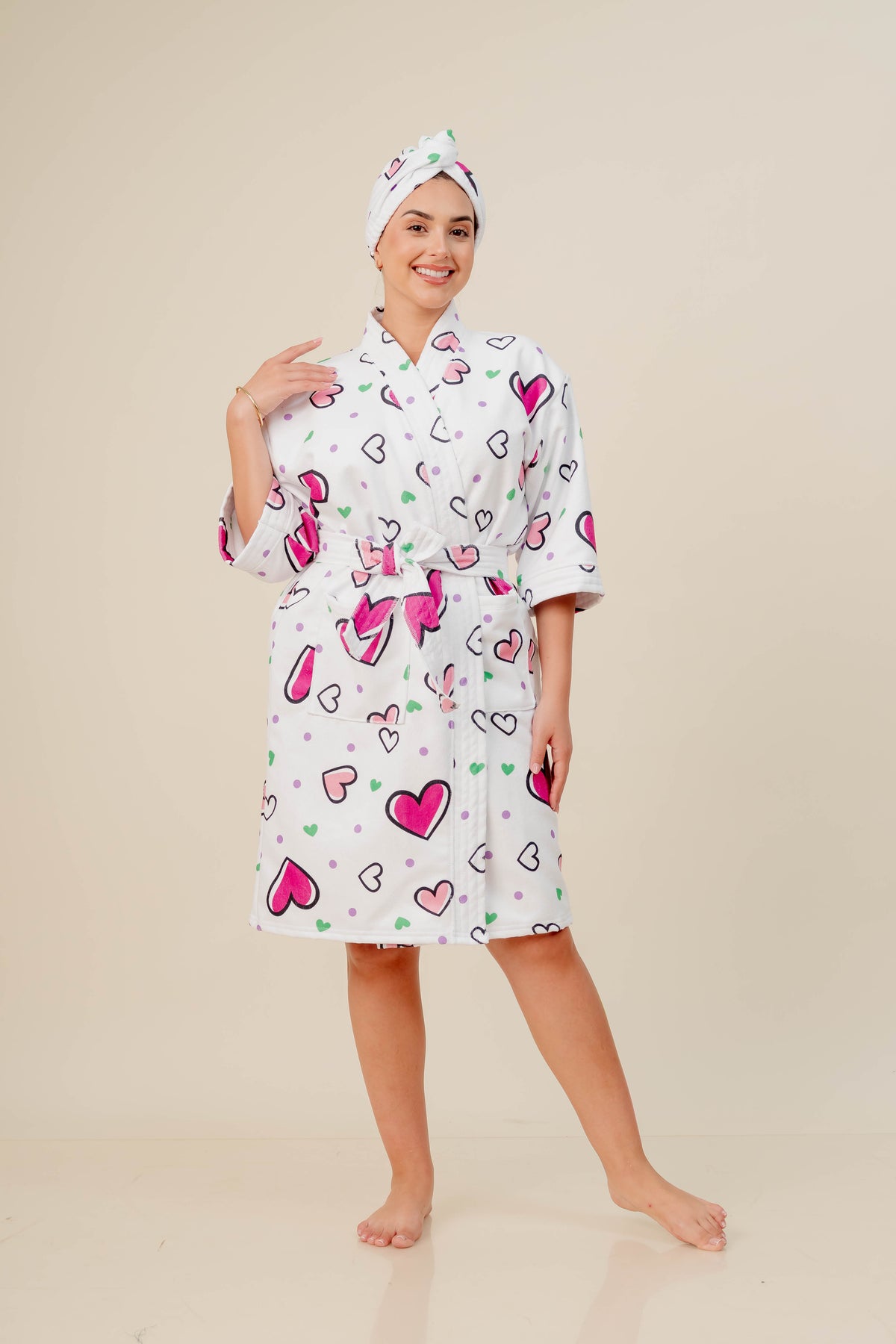 Bata de Baño + gorra Corazón - Microfibra Estampada